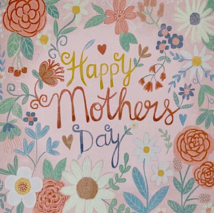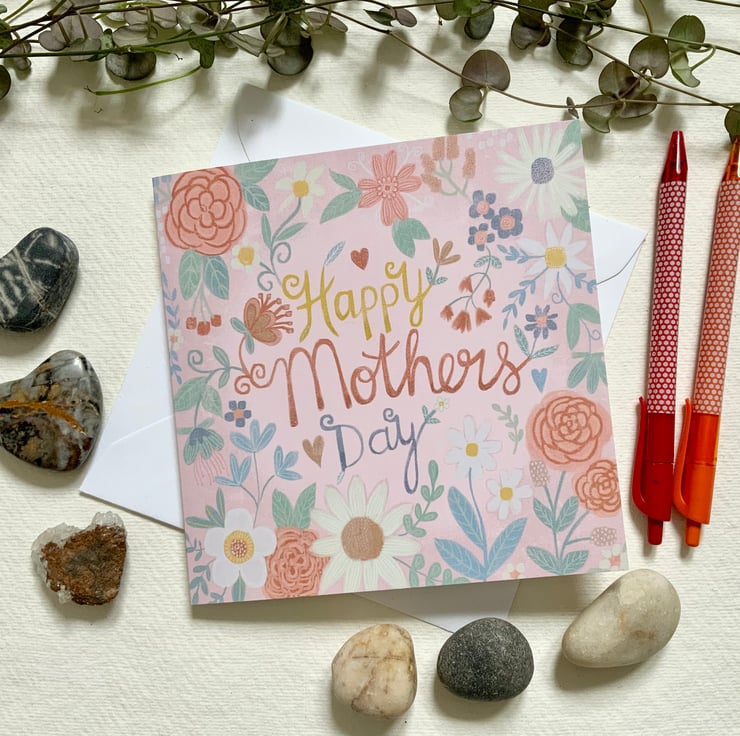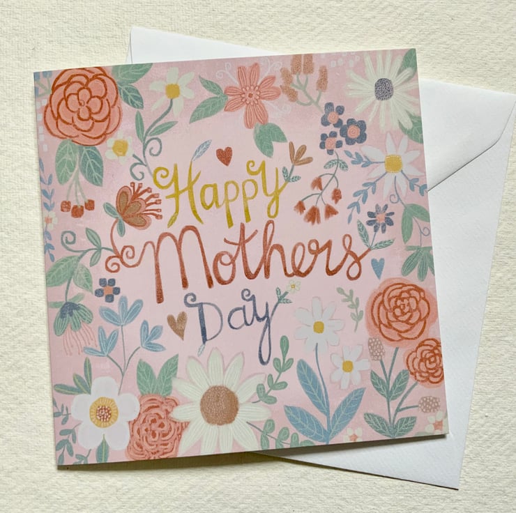 This pretty Mother’s Day card has been made from one of my digital paintings. A very pretty and feminine card in soft pinks and peach colours. Blank inside so you can add your own message. It measures 14.5x14.5 cm and comes with an envelope.