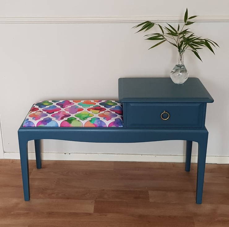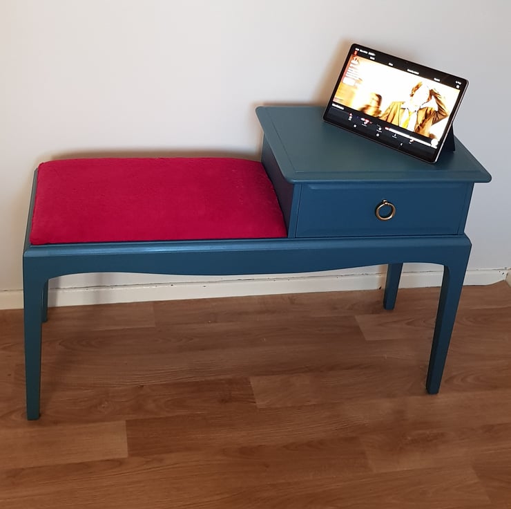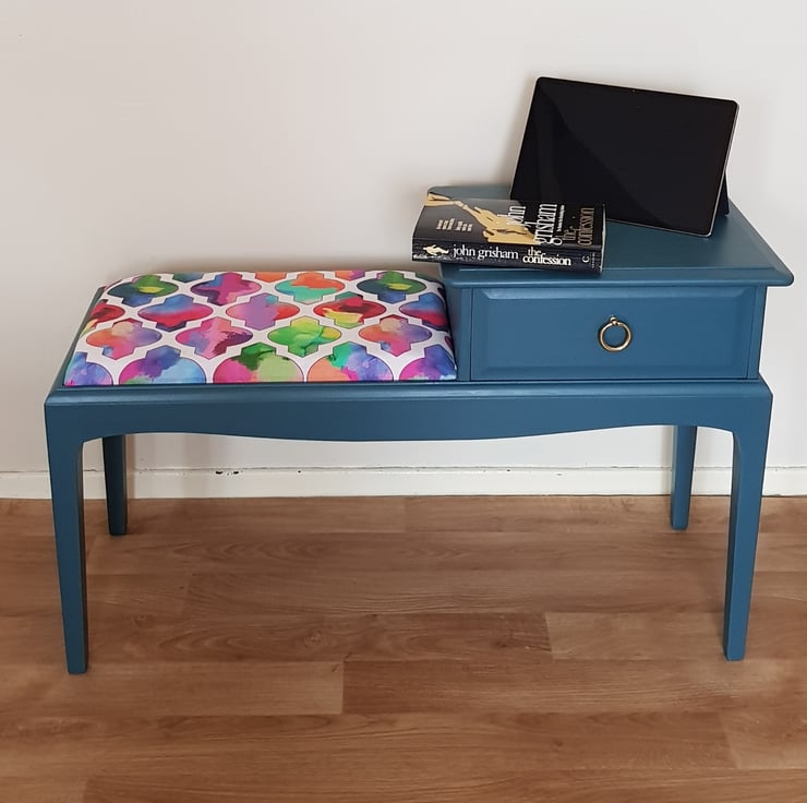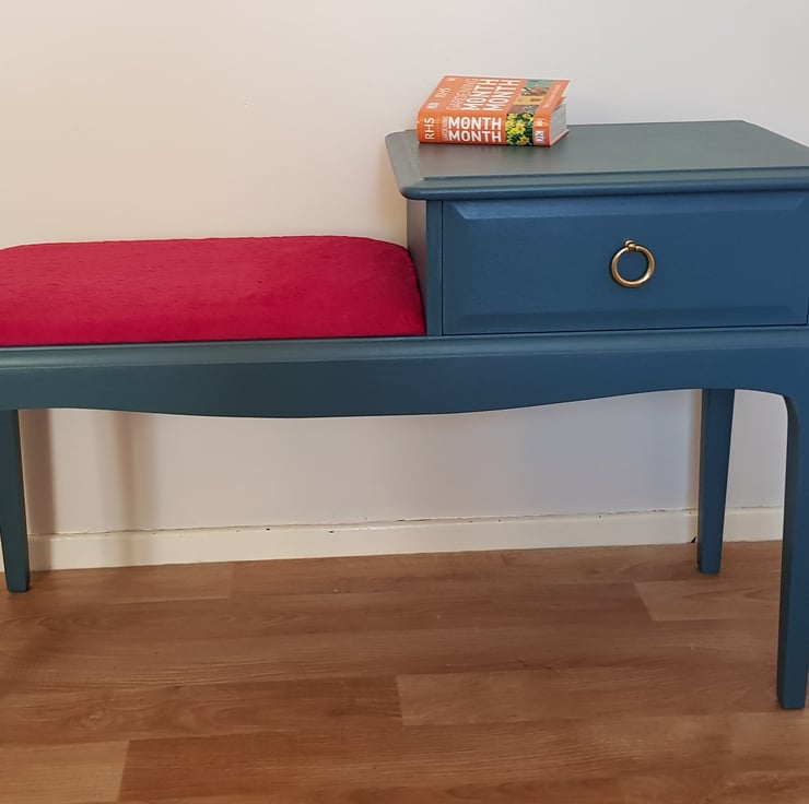 Painted in Fusion mineral paint in Seaside. A lovely telephone table which can be used in the bedroom as a bed side table or an end table. Also as entryway table.