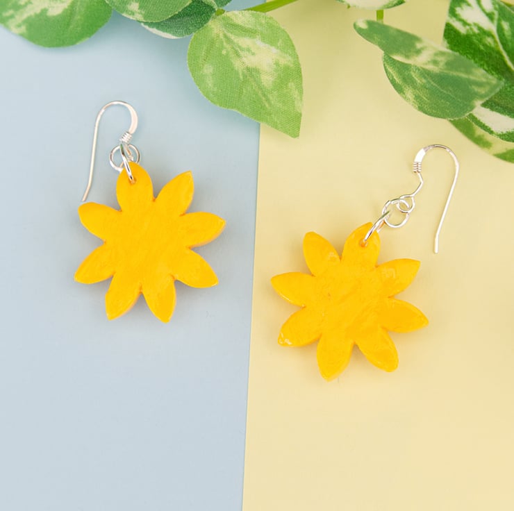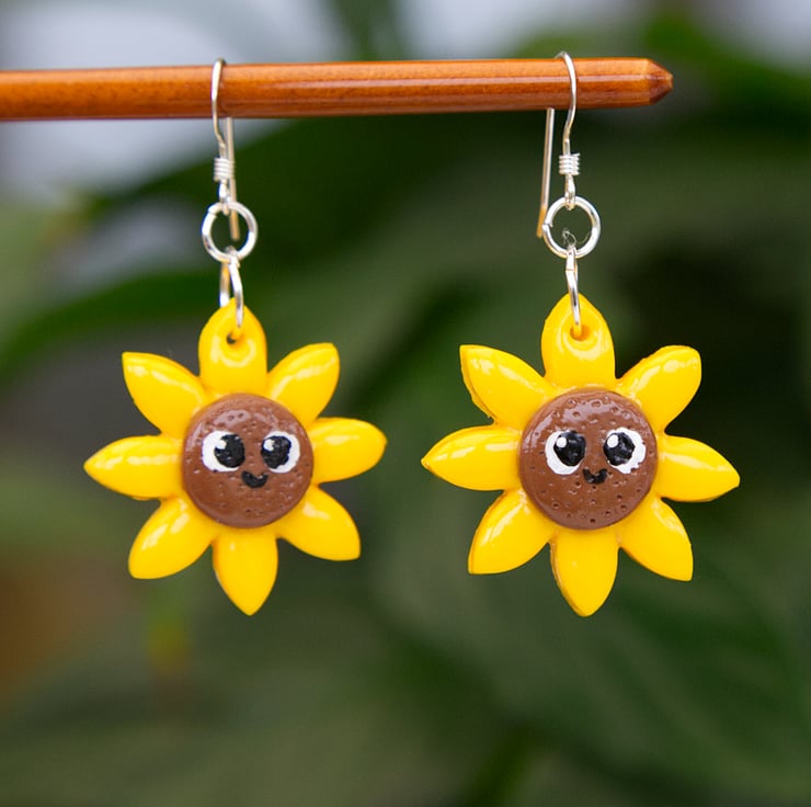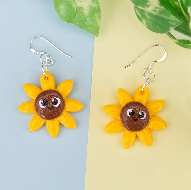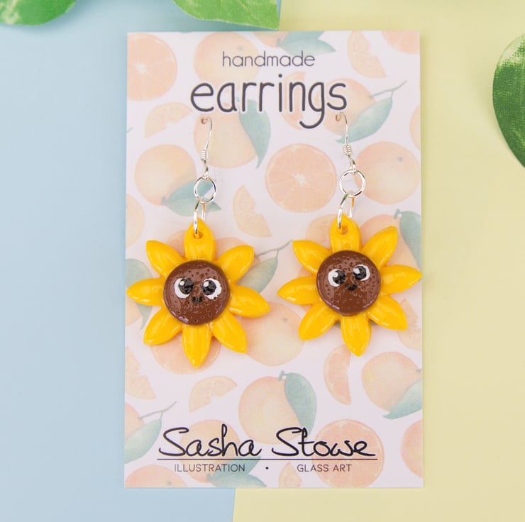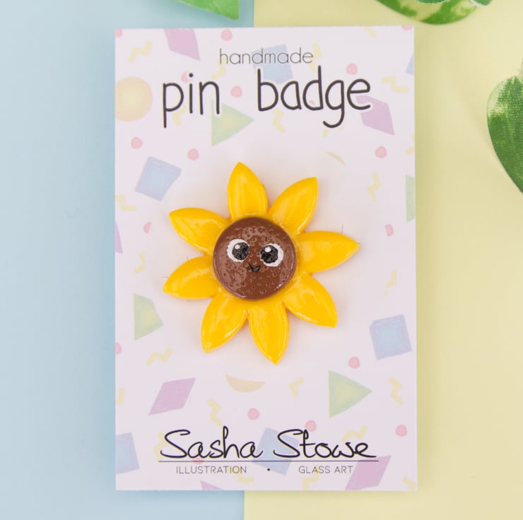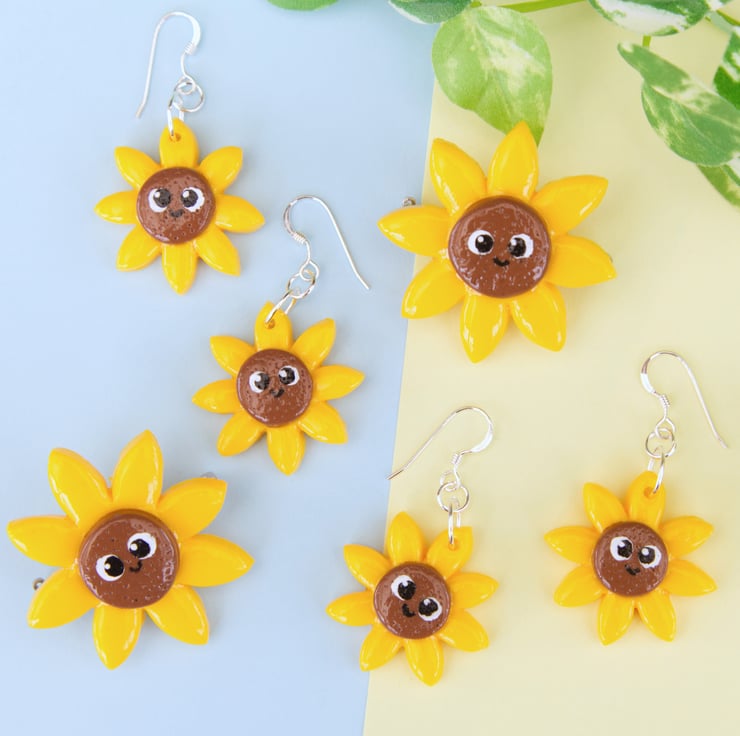 Cute little sunflower earrings and badges. These have been made in order to raise money for the humanitarian relief efforts due to the war in Ukraine. £8 from the sale of the earrings and £4 from the badges will be donated to the Disaster Emergency Committee's (DEC) Ukraine Appeal (https://www.dec.org.uk/appeal/ukraine-humanitarian-appeal).