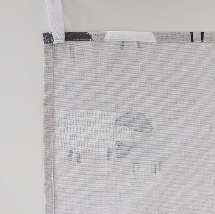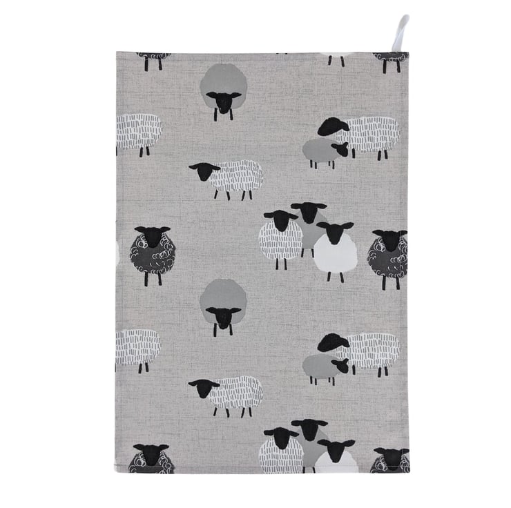 Tea towel in Fryett's Billie Bah on a grey background, handcrafted by Simply Divine Things.