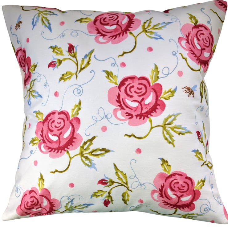 Item: Cushion cover in Emma Bridgewater Bee and Rose, handcrafted by Simply Divine Things.