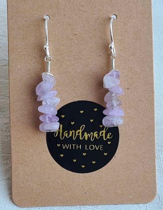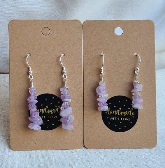 Earring length is approx 4cm long from the top of the ear wires to the bottom of the beads. The gemstone chip beads are Lilac Cape Amethyst chips on thin Sterling Silver Headpins, making these a beautiful and elegant pair. The ear wires are Sterling Silver Hooks.