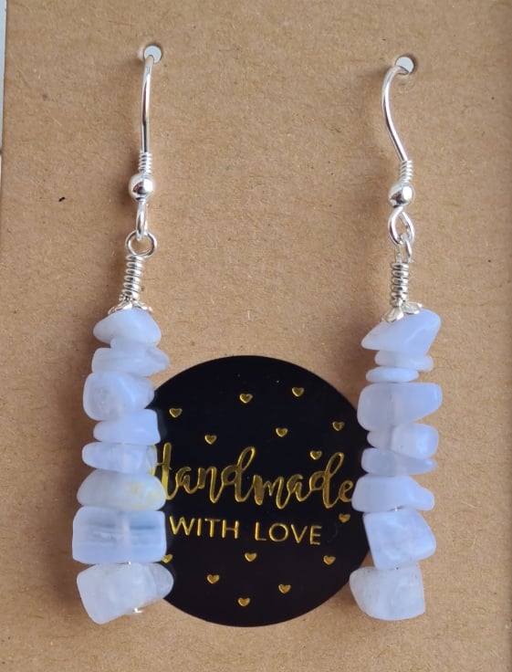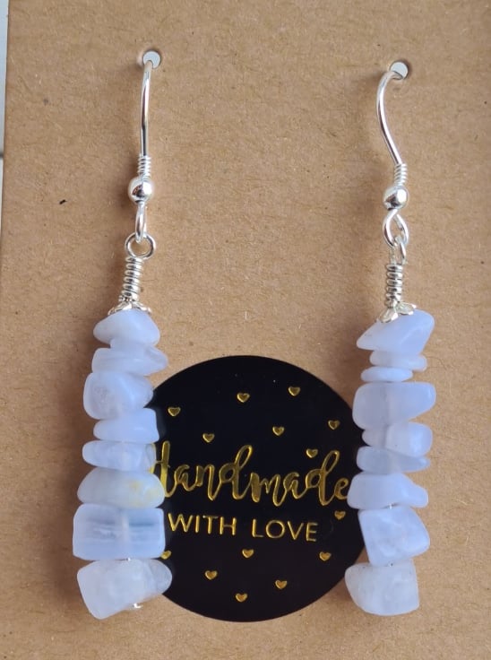 Absolutely gorgeous chip bead earrings, these are fab in their gorgeous Light Blue colour. On fine Sterling Silver headpins and Sterling Silver ball & coil ear wires. The pretty Blue Lace Agate beads and Silver tones go so well together. These would make a fabulous gift or a special treat for yourself.