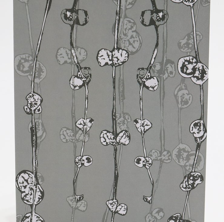 String of hearts greeting card is professionally printed from my own original artwork. This design features stems of the plant that were used to create original one-off Gelli Plate prints that have been digitally layered to create this design..