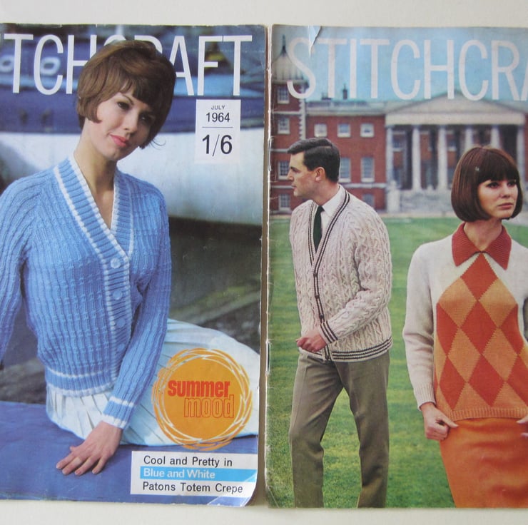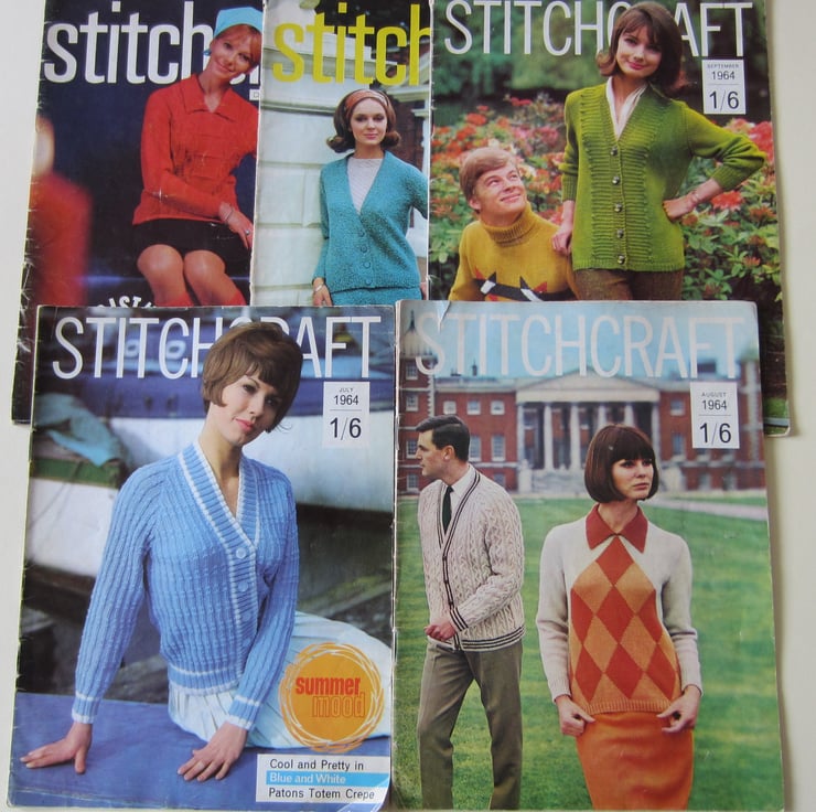 Nice lot of 5 1960s Stitchcraft magazines. Contents include patterns for knitting, crochet, embroidery, bazaar items, tapestry, rug making and much more.