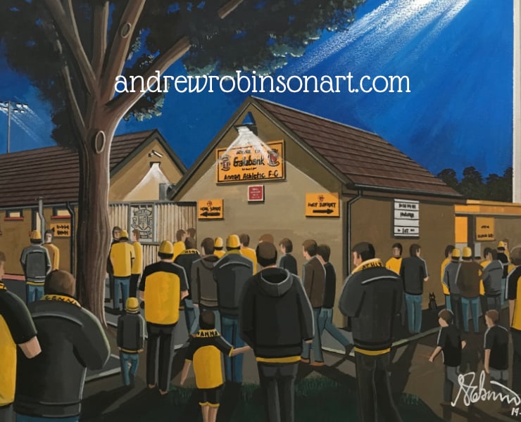 Titled ‘Galabank Gaiety’ this is a unique Annan Athletic F.C print direct from myself the artist. My artworks are a celebration of the match day experience and of stadium architecture.