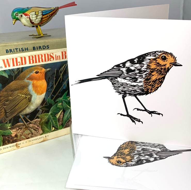 I’m often sketching and taking photographs of the birds in my garden and so used these to create my next collection of Lino print designs.