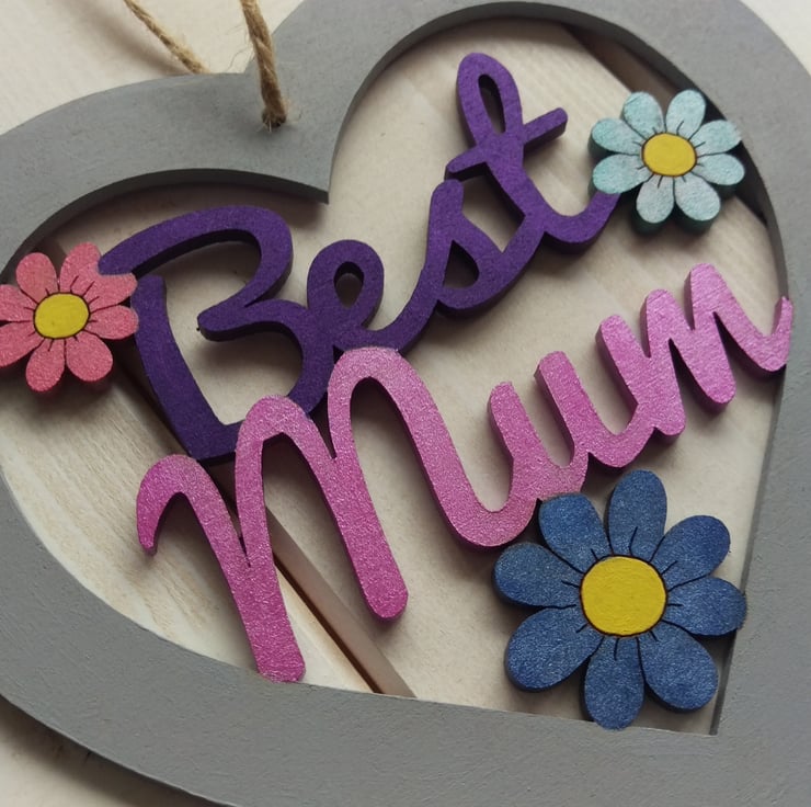 Mdf hanging heart with slogan " Best Mum.