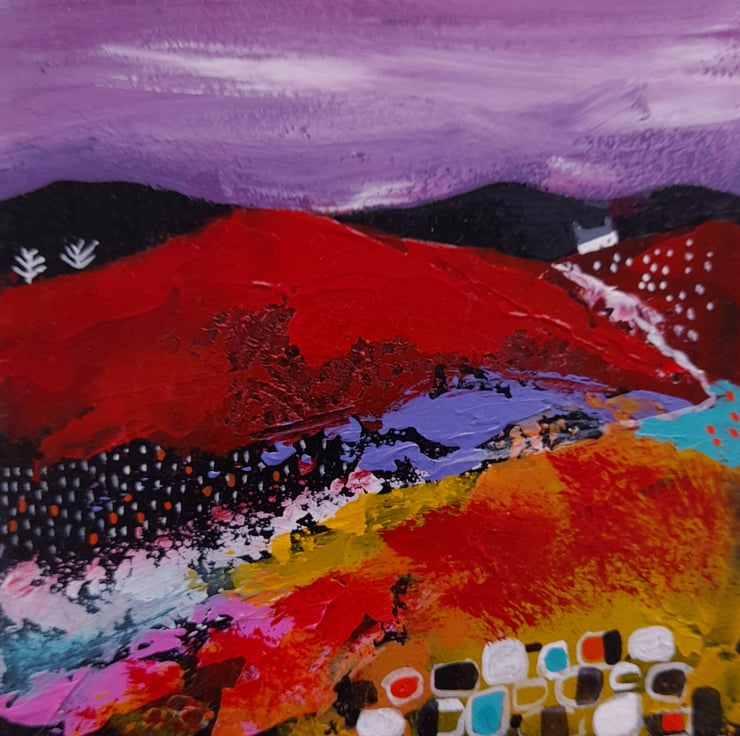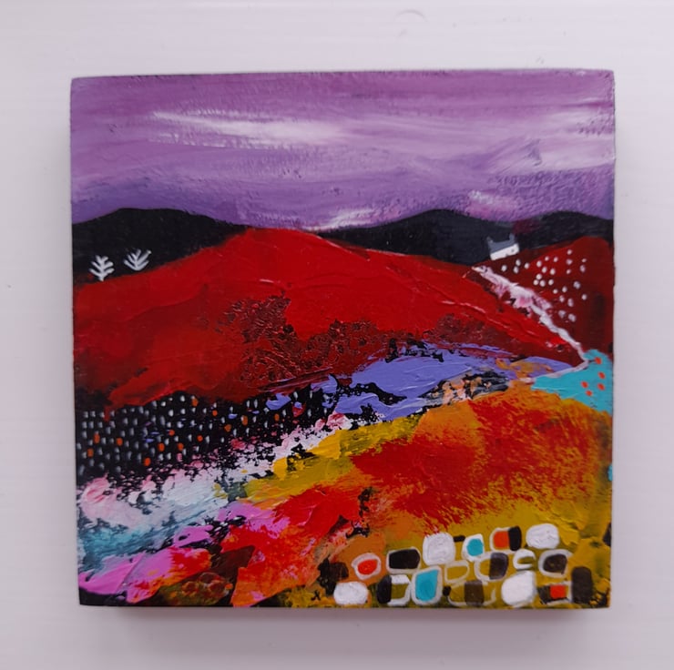 Original Acrylic painting 11 cm x 11cm with hanger on the back signed and varnished inspired by the Scottish Islands