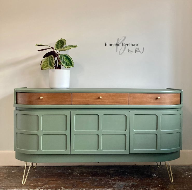 This gorgeous sideboard has been raised onto brushed gold hairpin legs, with matching brushed gold handles.