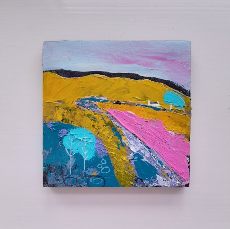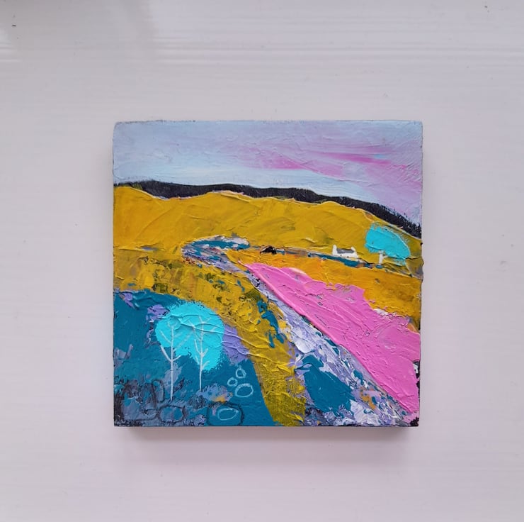 Original Acrylic painting 11 cm x 11cm with hanger on the back signed and varnished inspired by the Scottish Islands