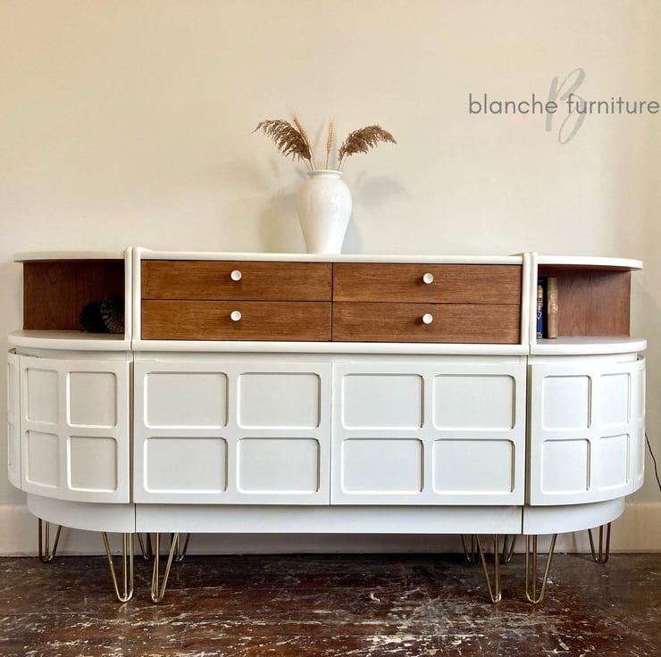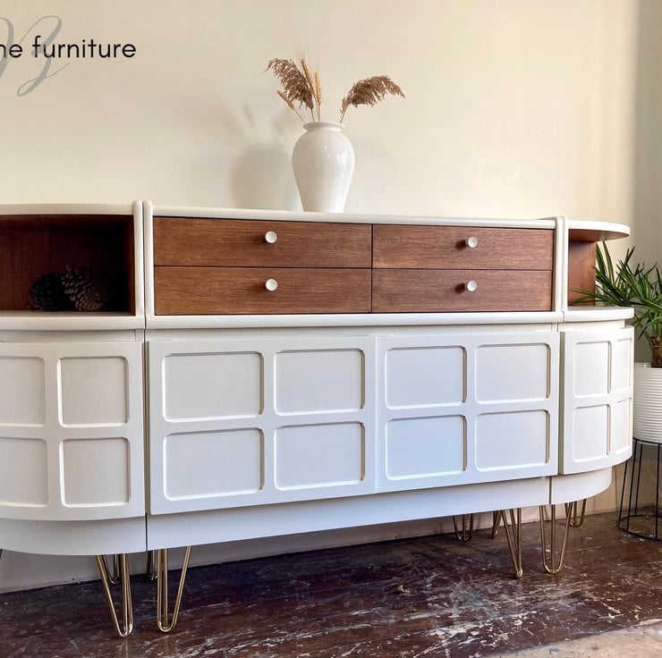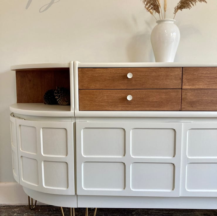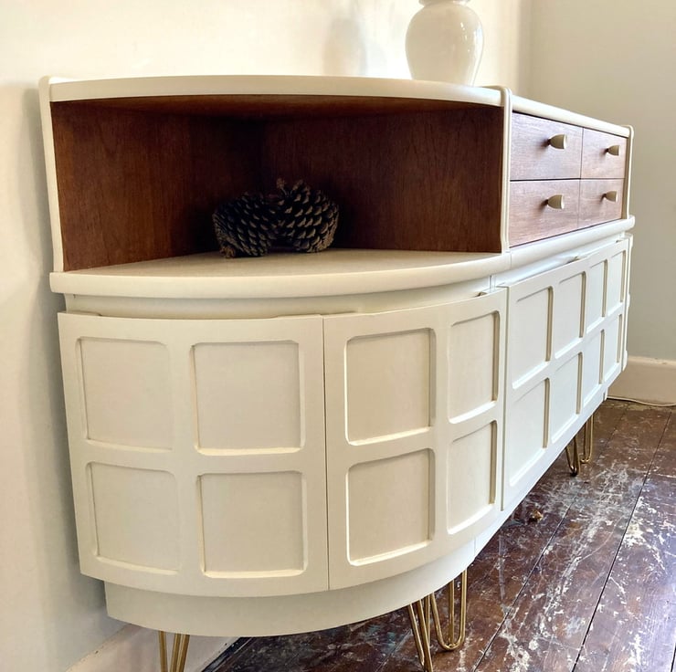 This Mid Century Modern sideboard has been professionally hand painted in Off White and sealed with layers of varnish for protection against every day usage.