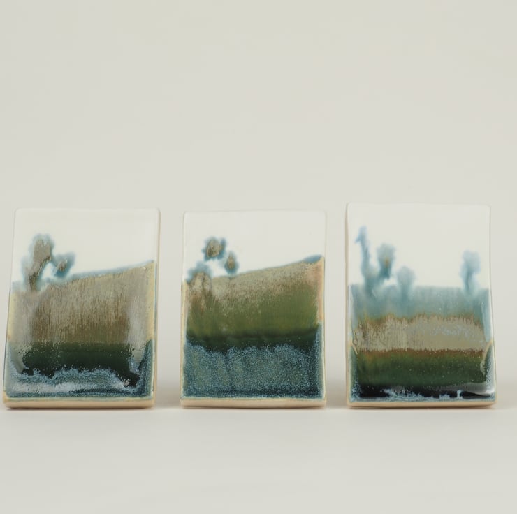 I have been inspired by my fellow Folksy sellers to try an ACEO format. And why not in ceramic? I just love this combination of glazes and this seems an ideal application for it!