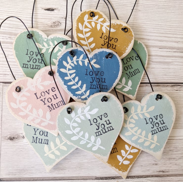 Hand Painted Wooden Heart Hanging Decoration 'Love You Mum'