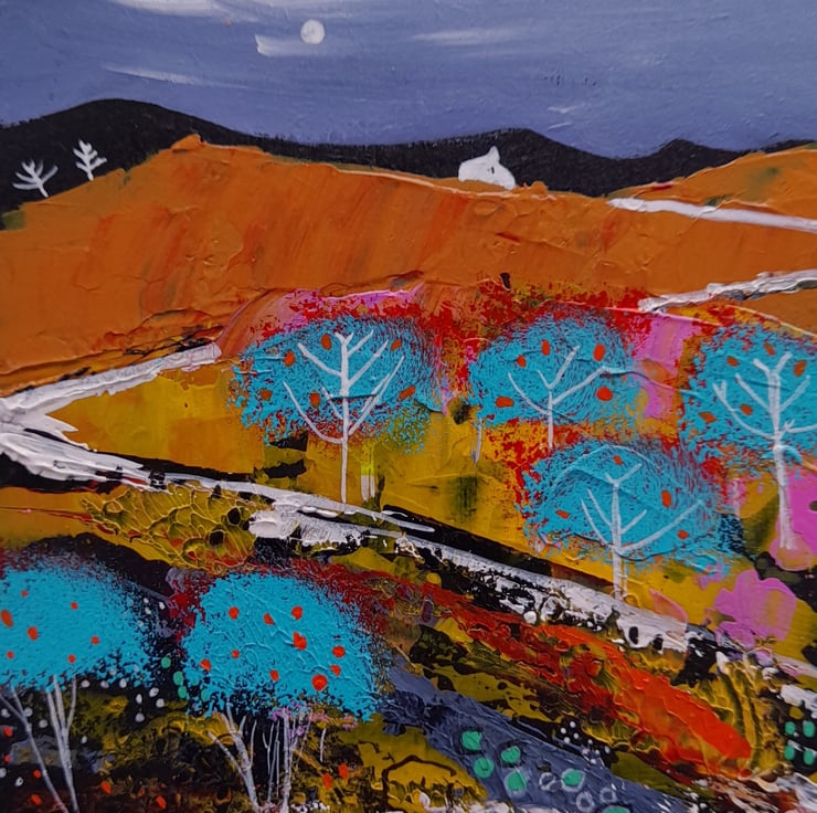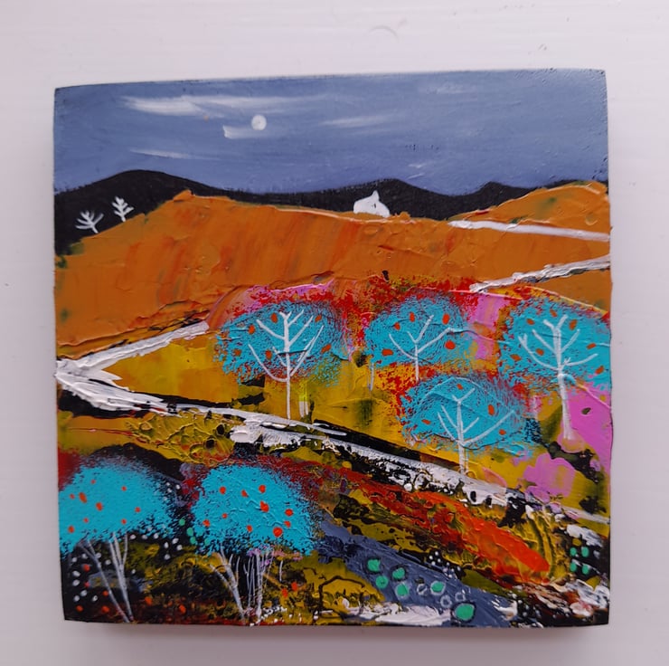 Original Acrylic painting 11 cm x 11cm with hanger on the back signed and varnished inspired by the Scottish Islands