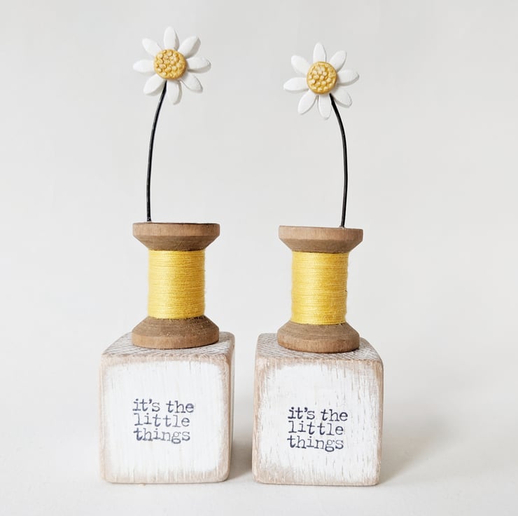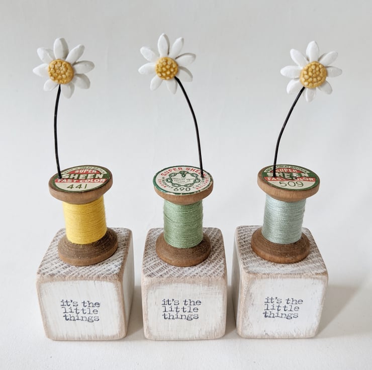 I love finding old bobbins on rummaging trips! The tiny daisy is perfect on top.