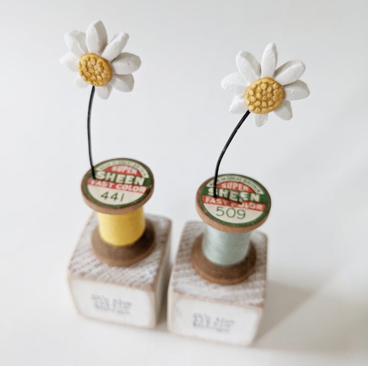 Clay Daisy on a Teeny Vintage Bobbin 'it's the little things'