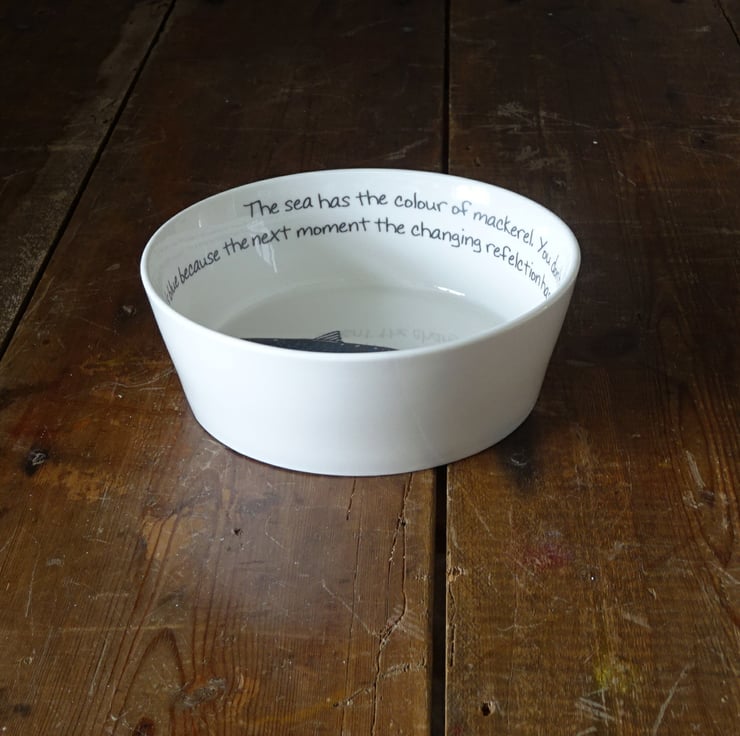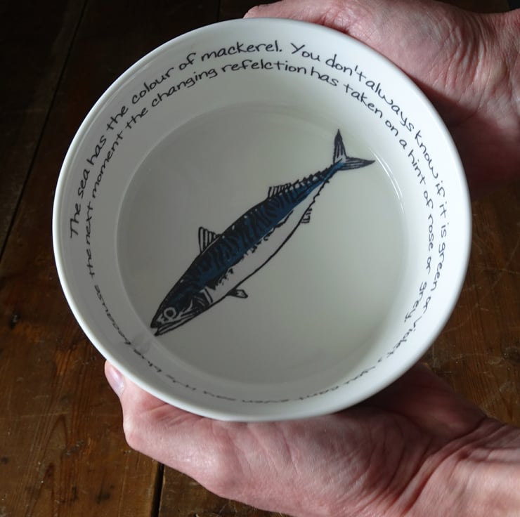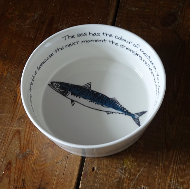 This stylish ceramic bowl with a striking Cornish mackerel print design has a million and one uses and will add a coastal feel to any room.