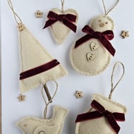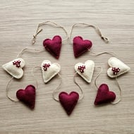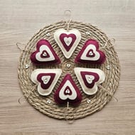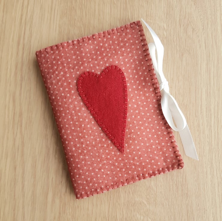 Made from Vivi Gade design felt in a brick red with cream spot. Decorated with a red heart. Tie close with a cream ribbon. All layers are double thickness for added protection. Measures 14cm c 10cm.