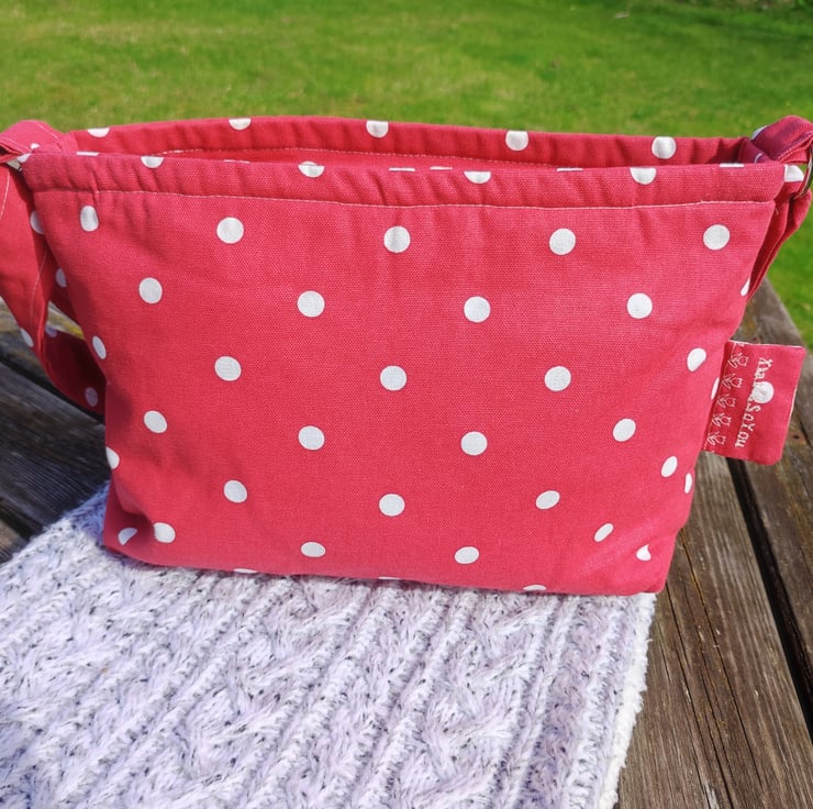 Lovely canvas fabric and a vintage lining, which complements the red dots!