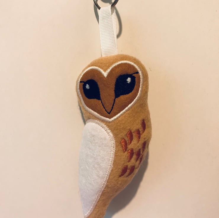 Keyring with felt embroidered owls, a perfect key fob gift for anyone who loves owls and wildlife, can also be used as a handbag charm