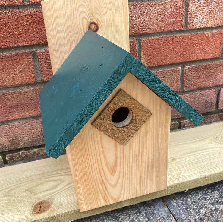 Bird box with hinged roof for access and cleaning, with a catch to hold the roof closed during nesting months. 30mm entrance to accommodate a number of different species.