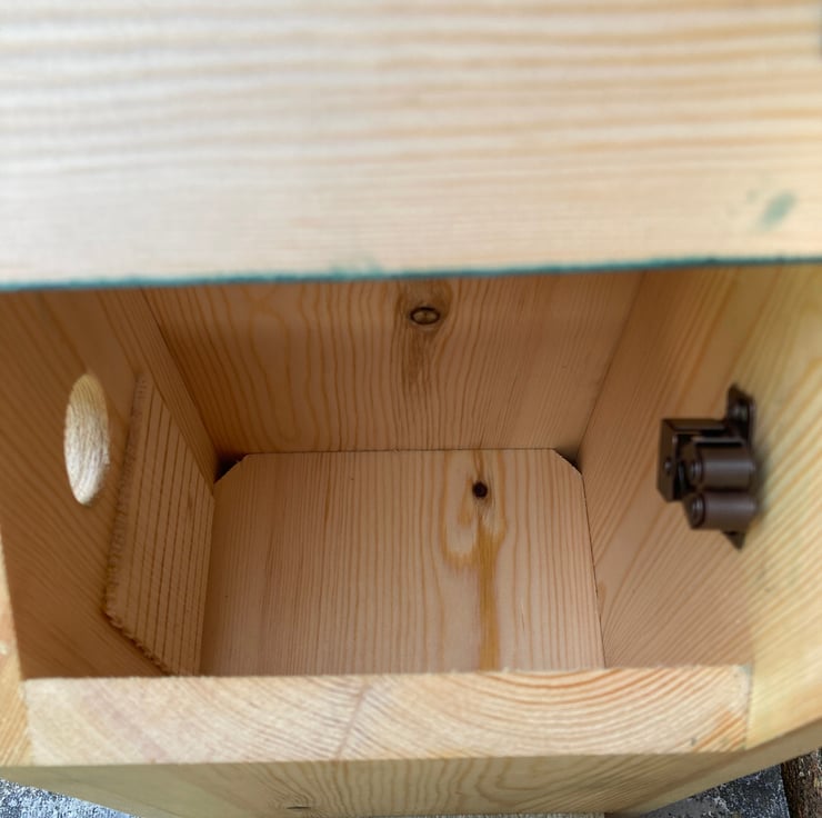 Fitted with a hardwood entrance protector and a ladder on the inside to help fledglings climb out, with added holes for drainage.