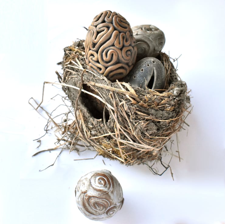 My ceramic eggs are 100% unique as two pieces will never be the same. From each handful of clay that I start with a different outcome will emerge as the clay is manipulated.