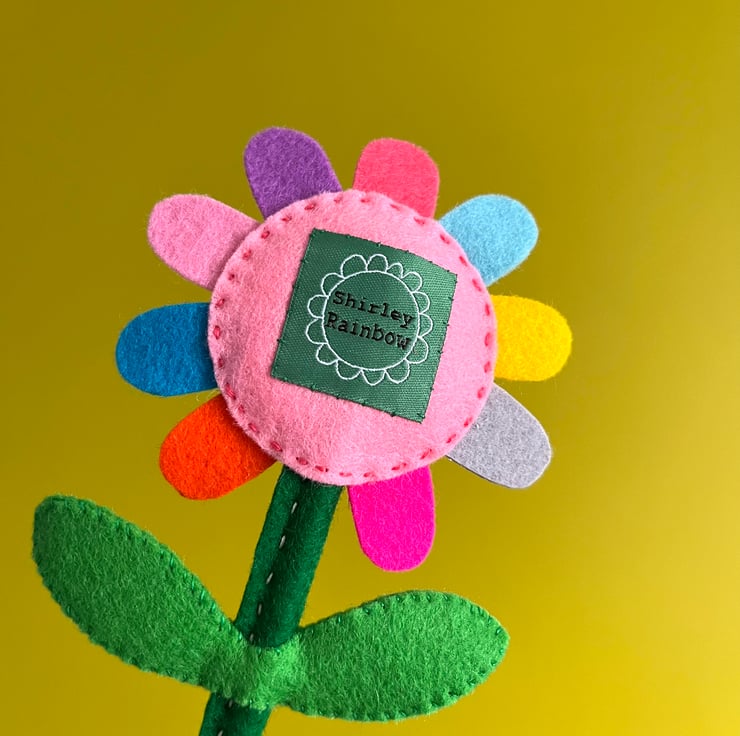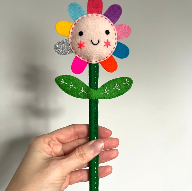 This cheerful hand stitched flower will never need watering, will always make you smile and will be happy wherever you put it in the house! A jolly gift for a friend, your lovely mum or to treat yourself. Just pop the flower in a vase!
