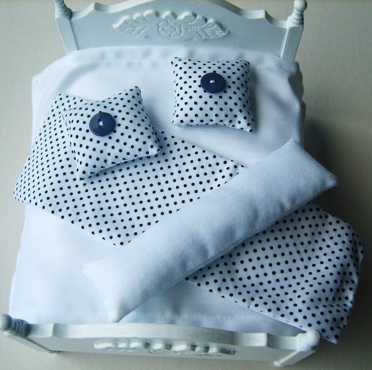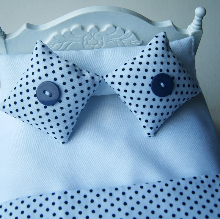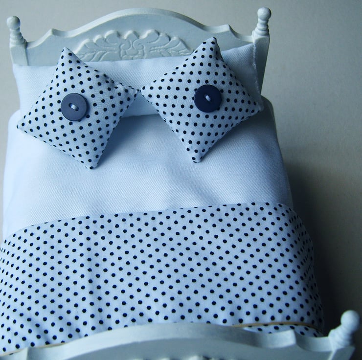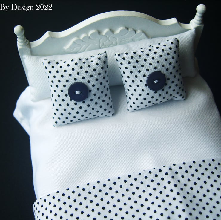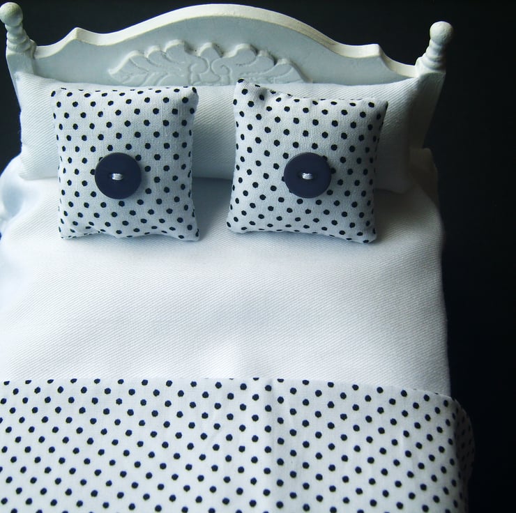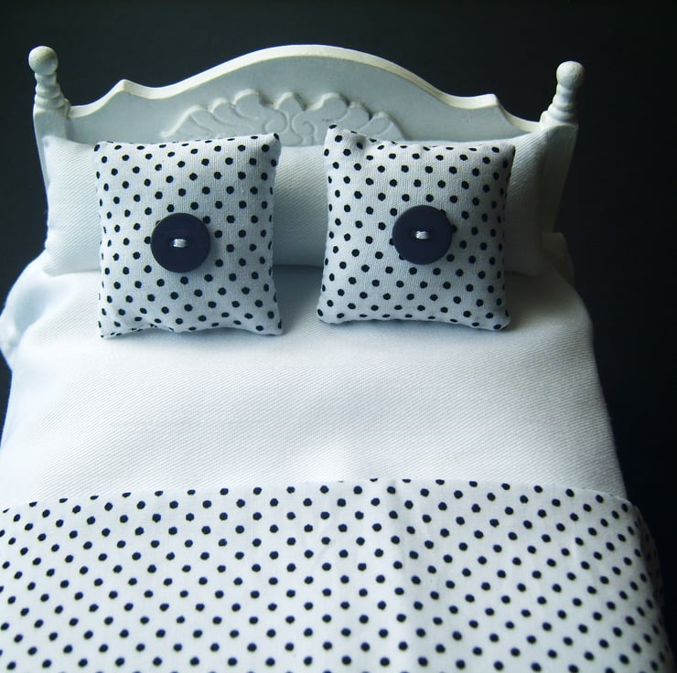 Fresh modern bedding for a minimalistic dolls house look.
