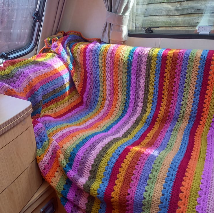 Would make a lovely addition to a caravan, where it can be used as a throw for the seating, a blanket for the bed or a nice cosy squishy blanket for cooler evenings outside.