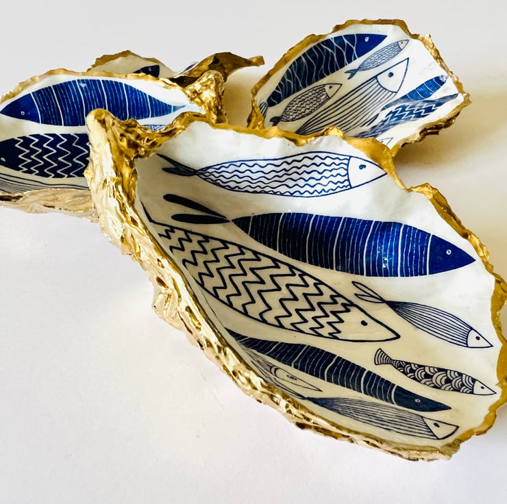 The shells size: will be between 11-12cm, Each shell trinket dish will have subtle variations which are caused by the natural variations in the shape and size of the sea shells used, as well as a result of the hand crafting painting method and the Decoupage.