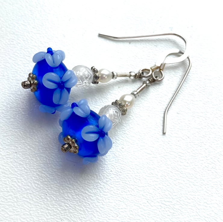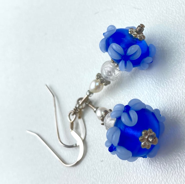 Earring drop size – approx 3.6cm from top to bottom. 9mm dis size of blue bead flower
