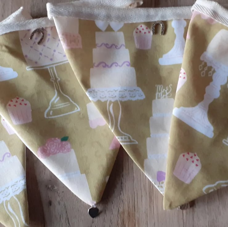 This beautiful small string of handmade Bunting would be perfect for your wedding Cake table. Perfect for a country wedding.