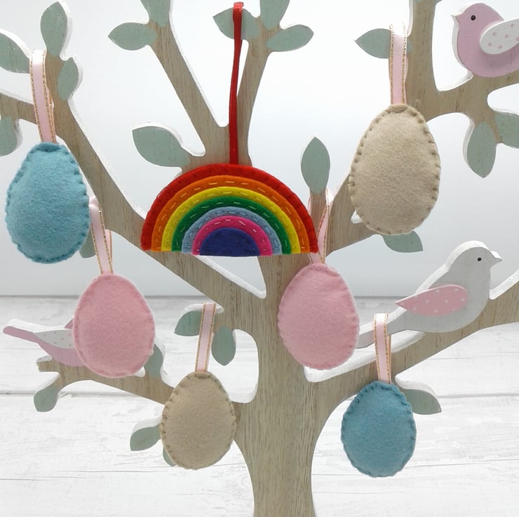 Comprising of 6 eggs and 1 traditional coloured rainbow, symbolizing hope and peace.
