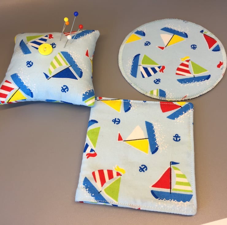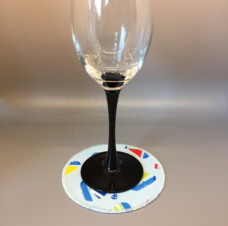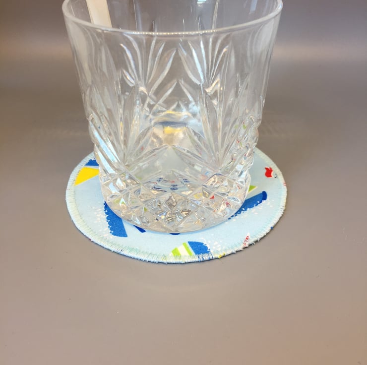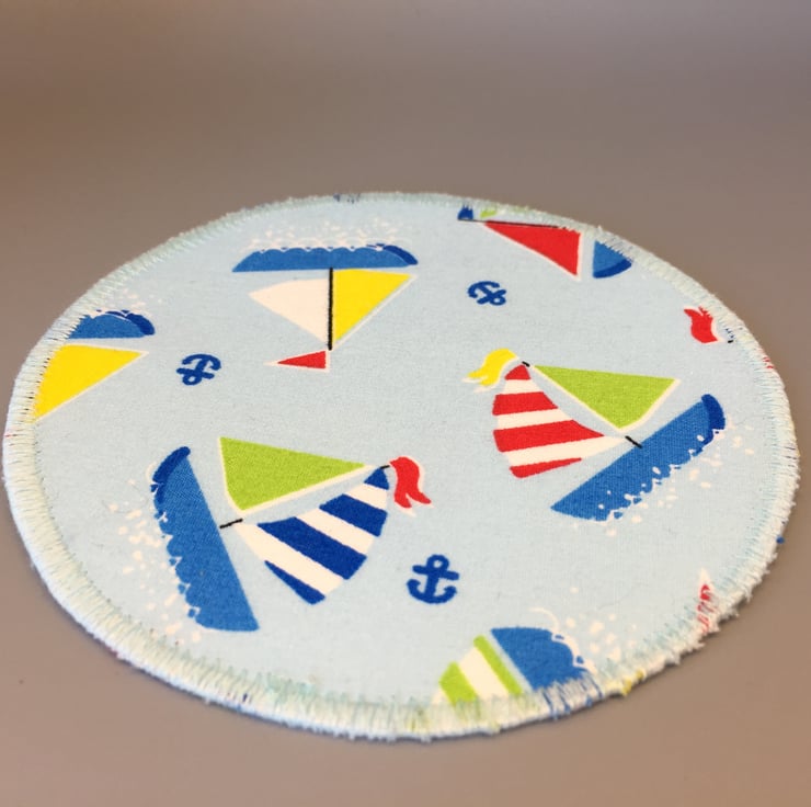 Circular coaster made of a lovely Bright coloured yacht fabric.