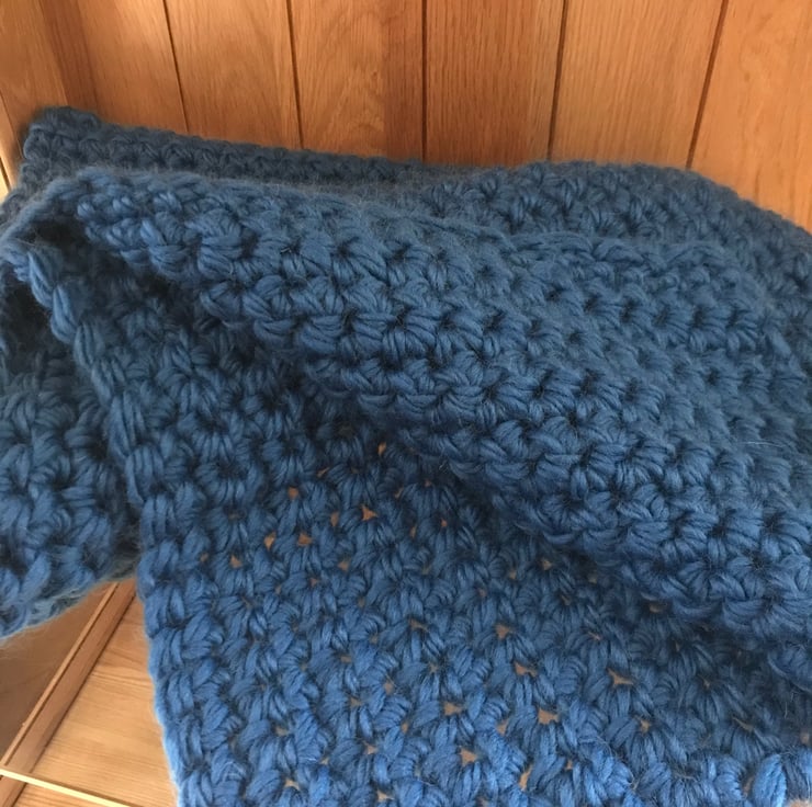 Soft, cosy, and warm 100% Bluefaced Kerry Hill Wool handcrafted lap blanket. The blanket is made from yarn that displays the new British Wool Logo, a guarantee that the wool is British.