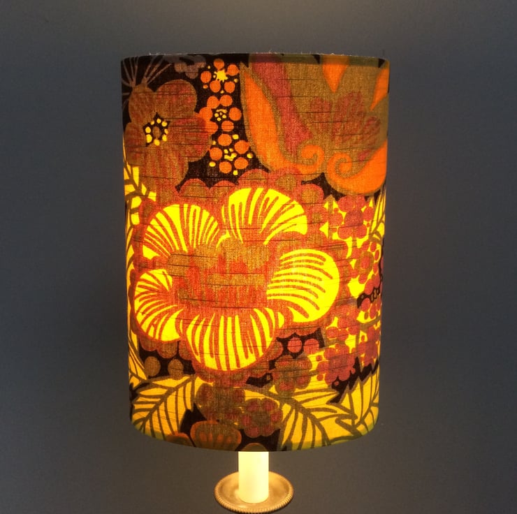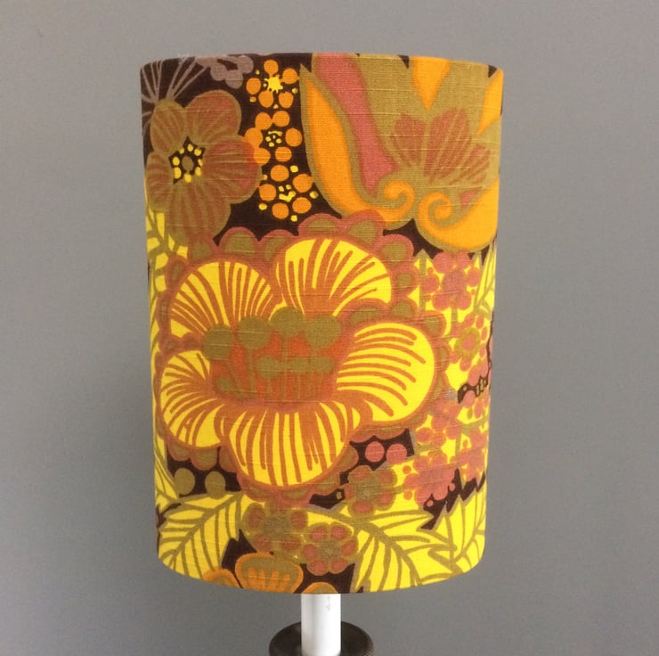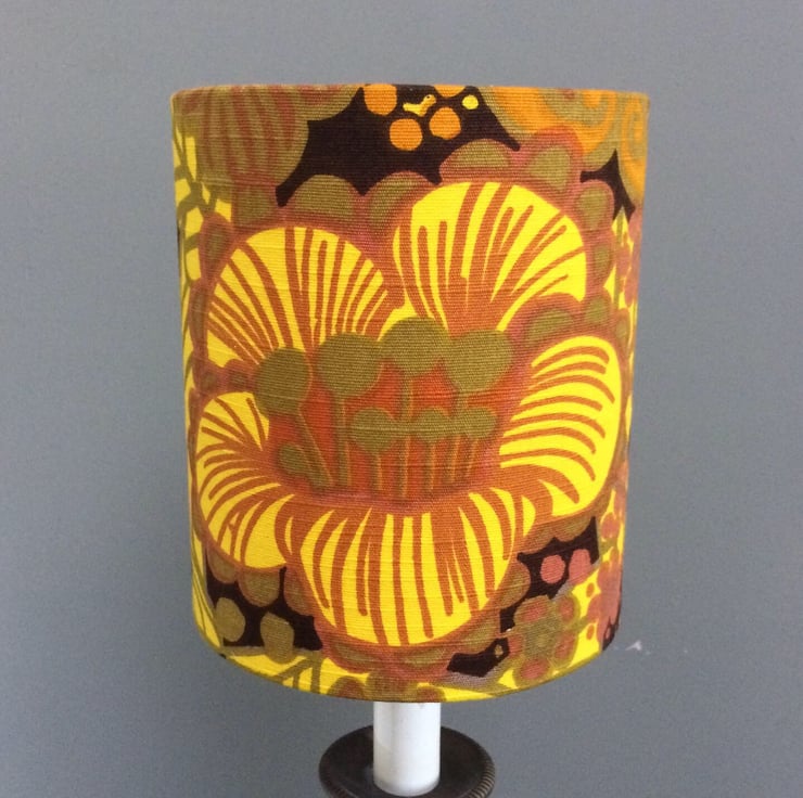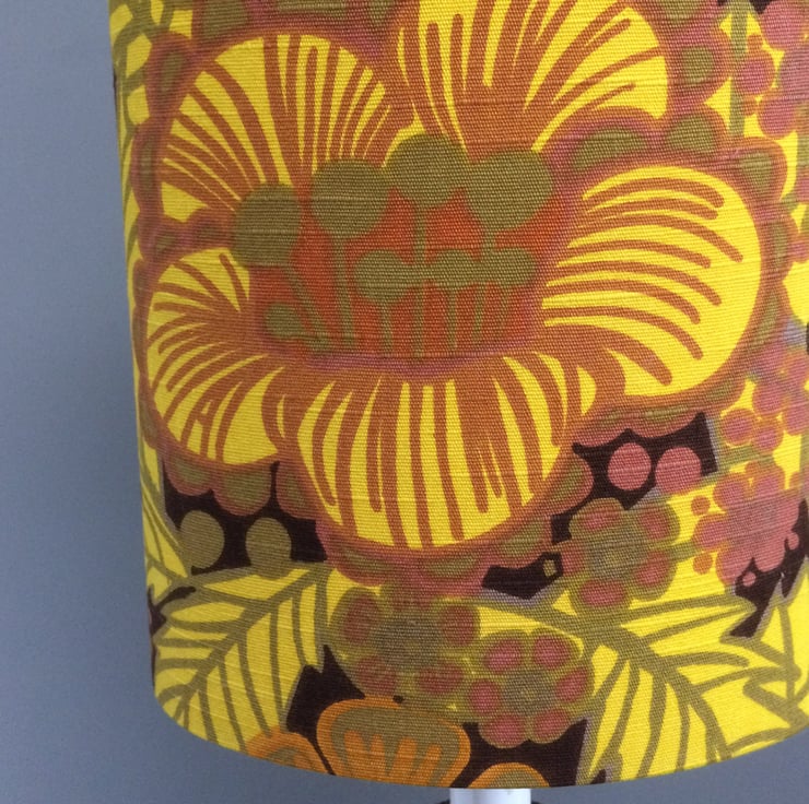 Yellow and mustard POMPEJA Boras Marta-Lena Bjerhagen Vintage Fabric Lampshade - striking fabric for a lampshade in a modern, vintage or retro home. I also have this in brown ( 2nd pic) and similar in pink.(BUT only a limited amount ) i