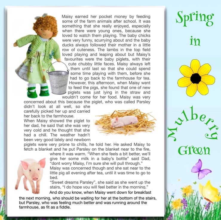 You can read my stories about Mulberry Green on my Facebook and Instagram pages - Maisy Muffin Rag Dolls or alternatively, you can find all of my stories on my Pinterest board - Mulberry Green stories