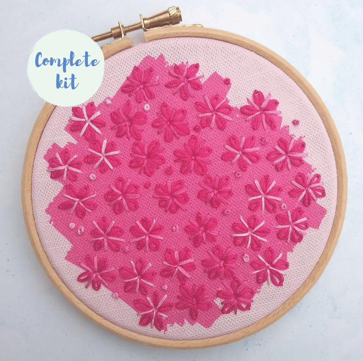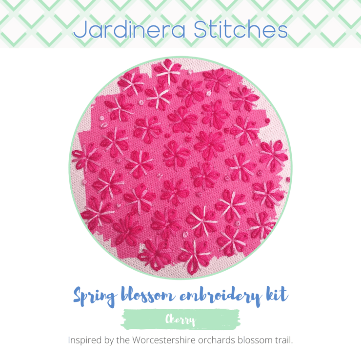 Bask in the beauty of blossom with this charming cherry blossom embroidery kit. Inspired by Worcestershire's blossom trail through the county's acres of orchards, this design captures the heady hot pink of cherry blossom / sakura.