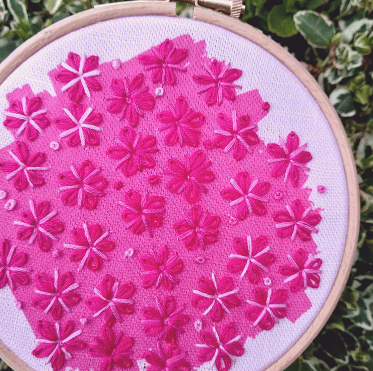 - 2 x full skeins of DMC stranded cotton in a hot pink solid colour and variegated pinks