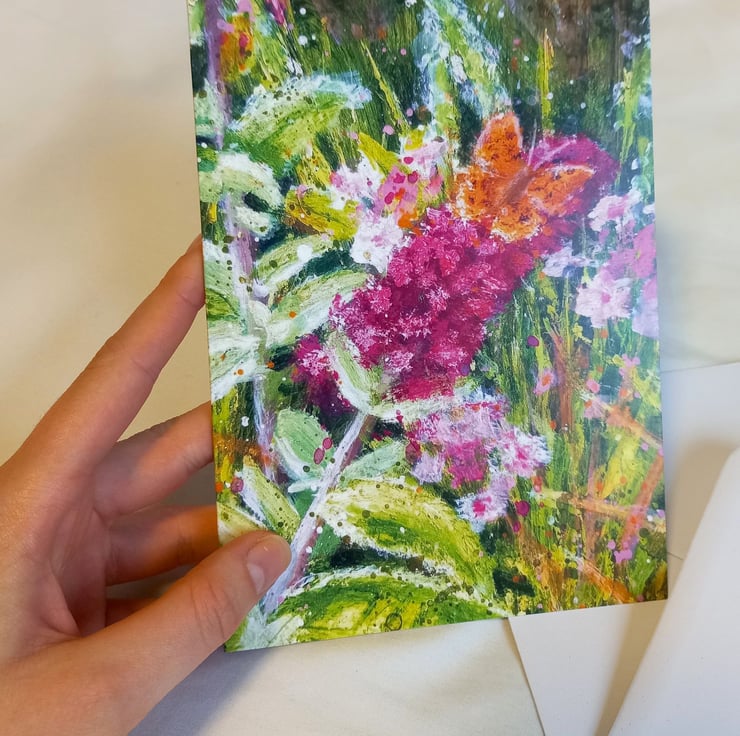 The card is 5x7 inches (closed) and is printed on high-quality 300gsm card. It comes with a recycled paper envelope.