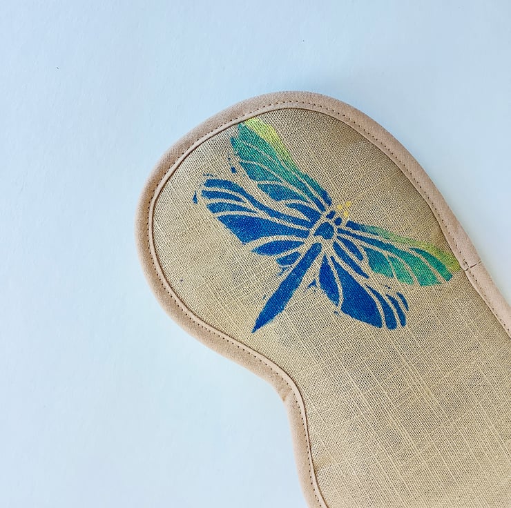 Hand carved motif featured on eye mask and lavender sachet was inspired by the Dragonflies with their iridescent wings glimmering in the sun.