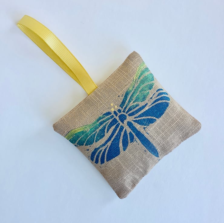 - Lavender bag hand printed with an original linocut designs using eco friendly inks on to natural 100% linen