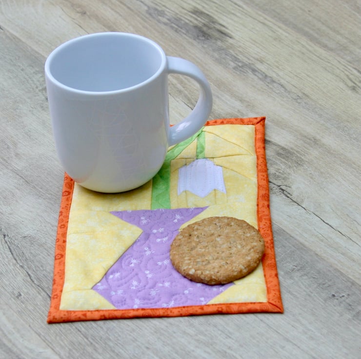 This beautiful mug rug, featuring a Snowdrop in a vase, is big enough to accommodate your drink and a cheeky biscuit.