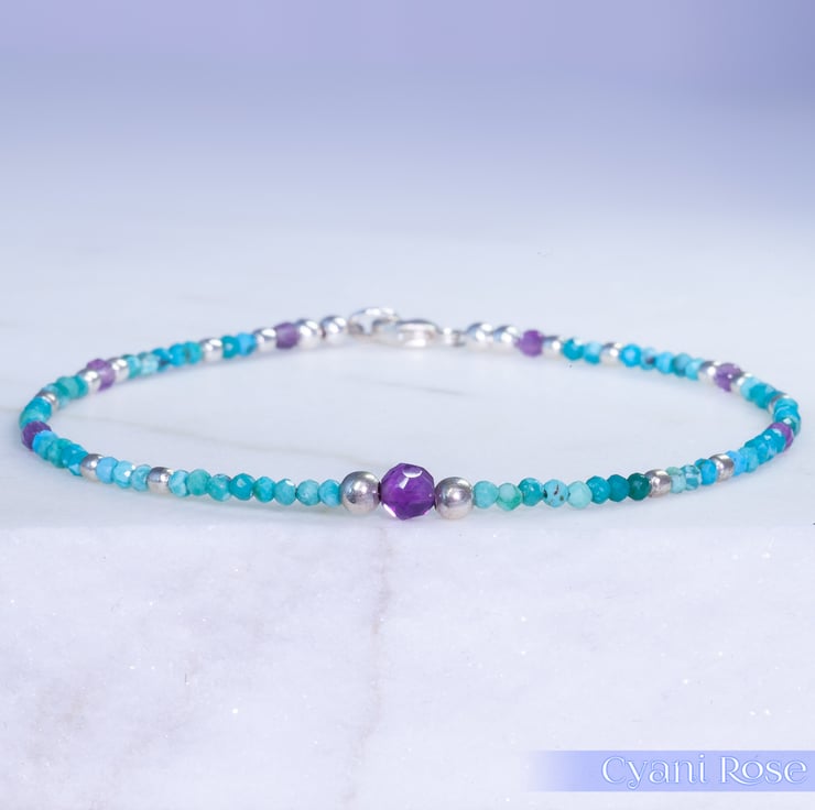 I just love Turquoise, it's the perfact combination with Amethyst and Silver. Such a happy summery bracelet.
