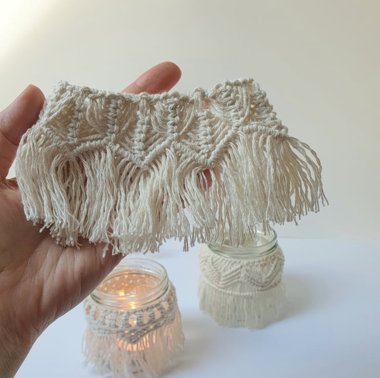 Custom orders are welcome. Please contact me with your jar's measurements and I will make the unique macrame piece for you.