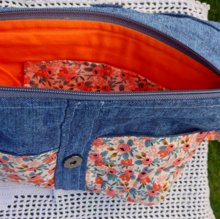 The orange lining and the outside fabric is very carefully chosen, they match in colour and design and come with a small matching purse