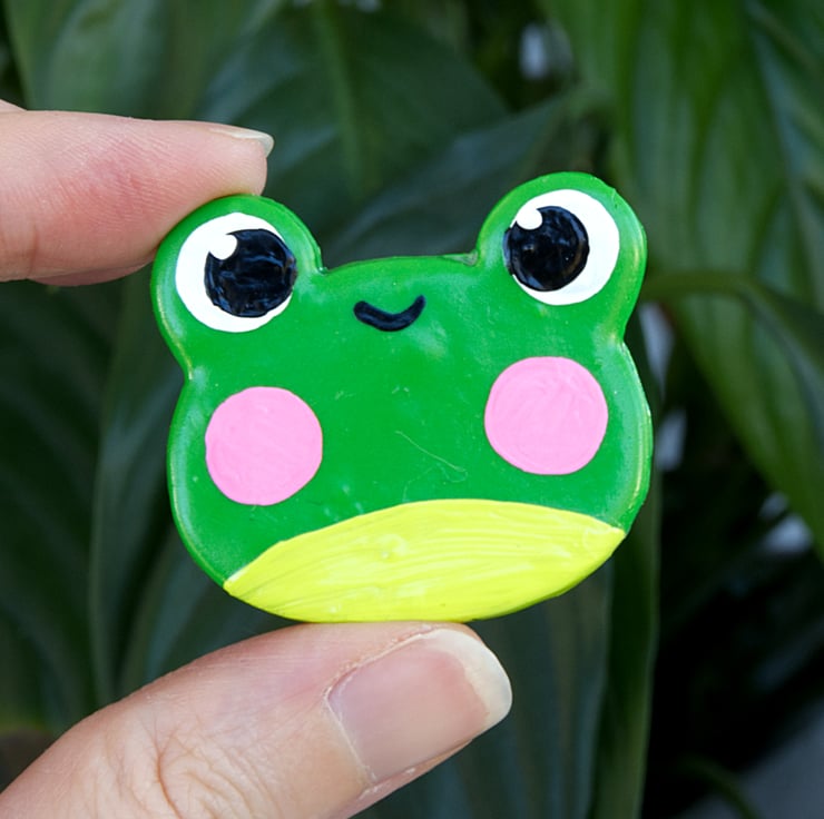Two cute little frog polymer clay pin badges (sold individually). A very cute little gift for any animal lover.