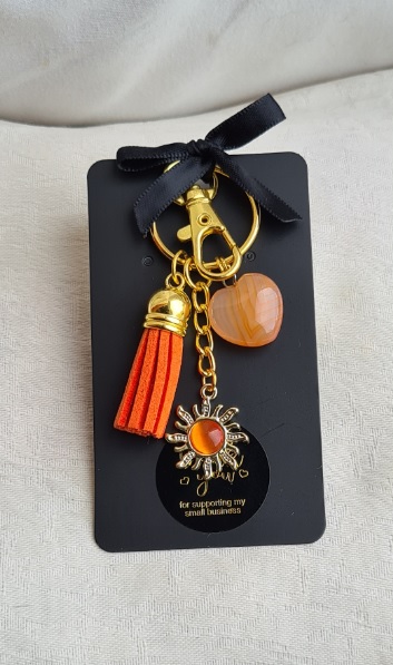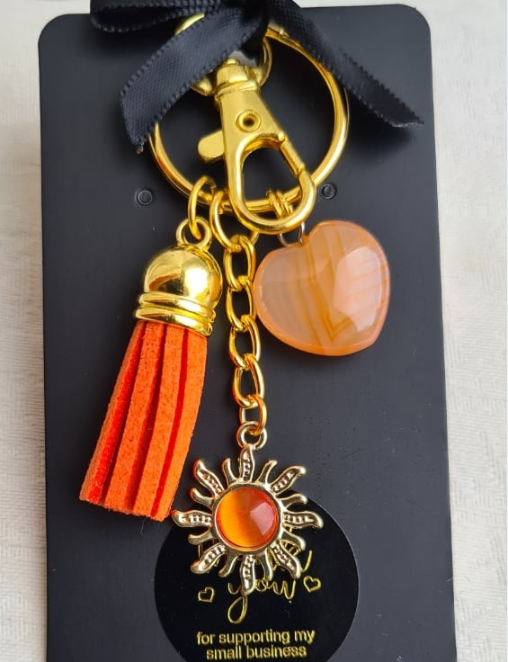 Brighter Days Keyring 6 - Orange Sun, Orange Tassel, Orange Gemstone Heart.